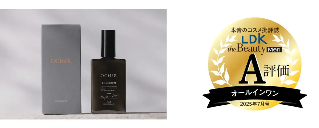 株式会社オーカー(本社:東京都目黒区、代表取締役:服部 広毅、以下オーカー)が展開するメンズコスメブランド「OCHER(オーカー)」のオールインワンセラム「OCHER THE SERUM」が、MONOQLO7月号内「LDK the Beauty Men」(『MONOQLO』×『LDK the Beauty』合同企画)のオールインワンセラム製品としてA評価を受賞しました。